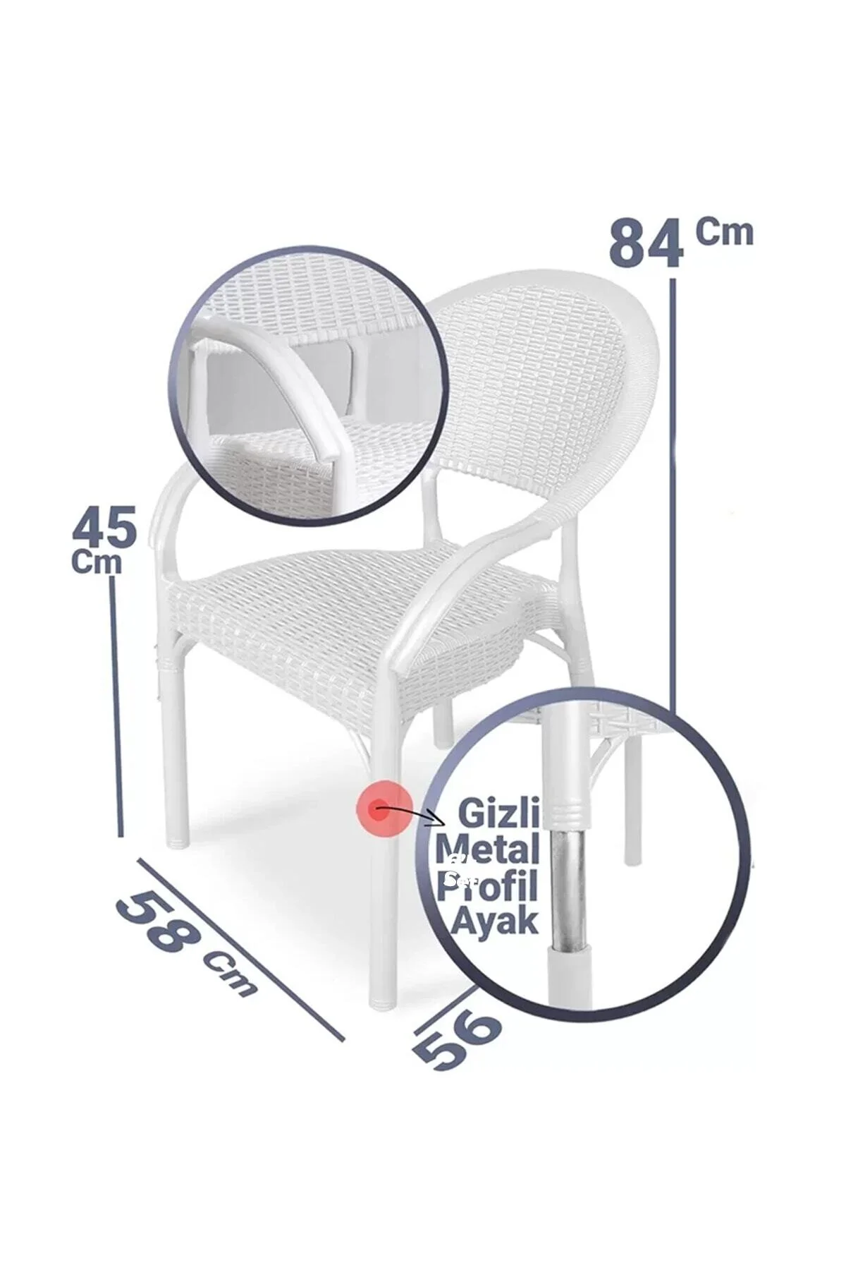 Alezy Bambu Balkon Bahçe Masa Takımı 4 Kişilik 70x70 Masa 4 Adet Bambu Koltuk Beyaz