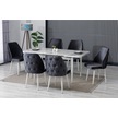 Alin Beyaz Mermer Desen 80x132 Açılabilir Mdf Masa Yemek Odası Takımı Mutfak Takımı 6 Sandalyeli Gri