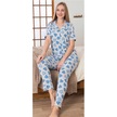 Alissa 6275 Kadın Mavi Kalp Desenli Patlı Pijama Takımı Gri