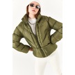 Alisse-kadın Haki Dik Yaka Kısa Şişme Mont Haki