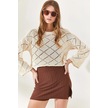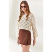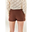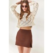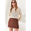 Alisse Kadın Kahverengi Çizgili Likralı Mini Yırtmaçlı Şort Etek Kahvrengi Çizgili Kahverengi