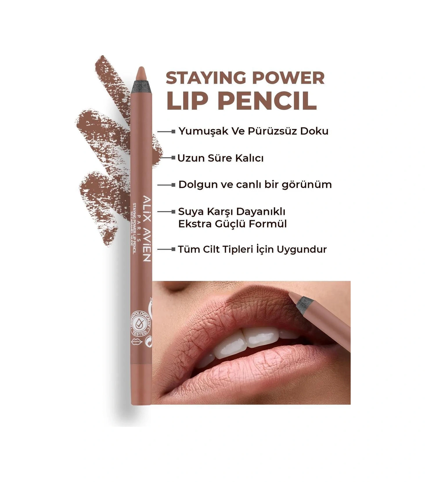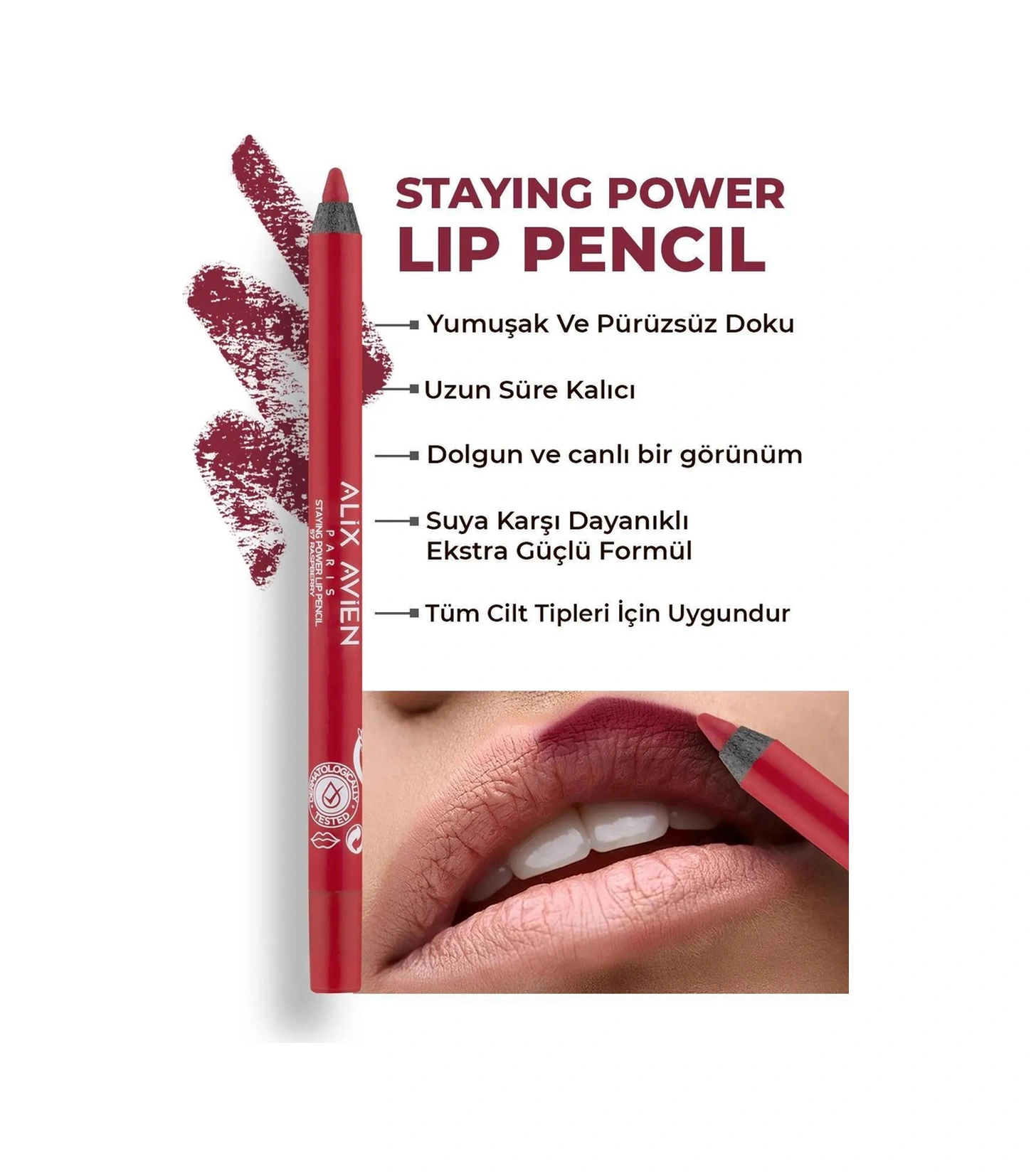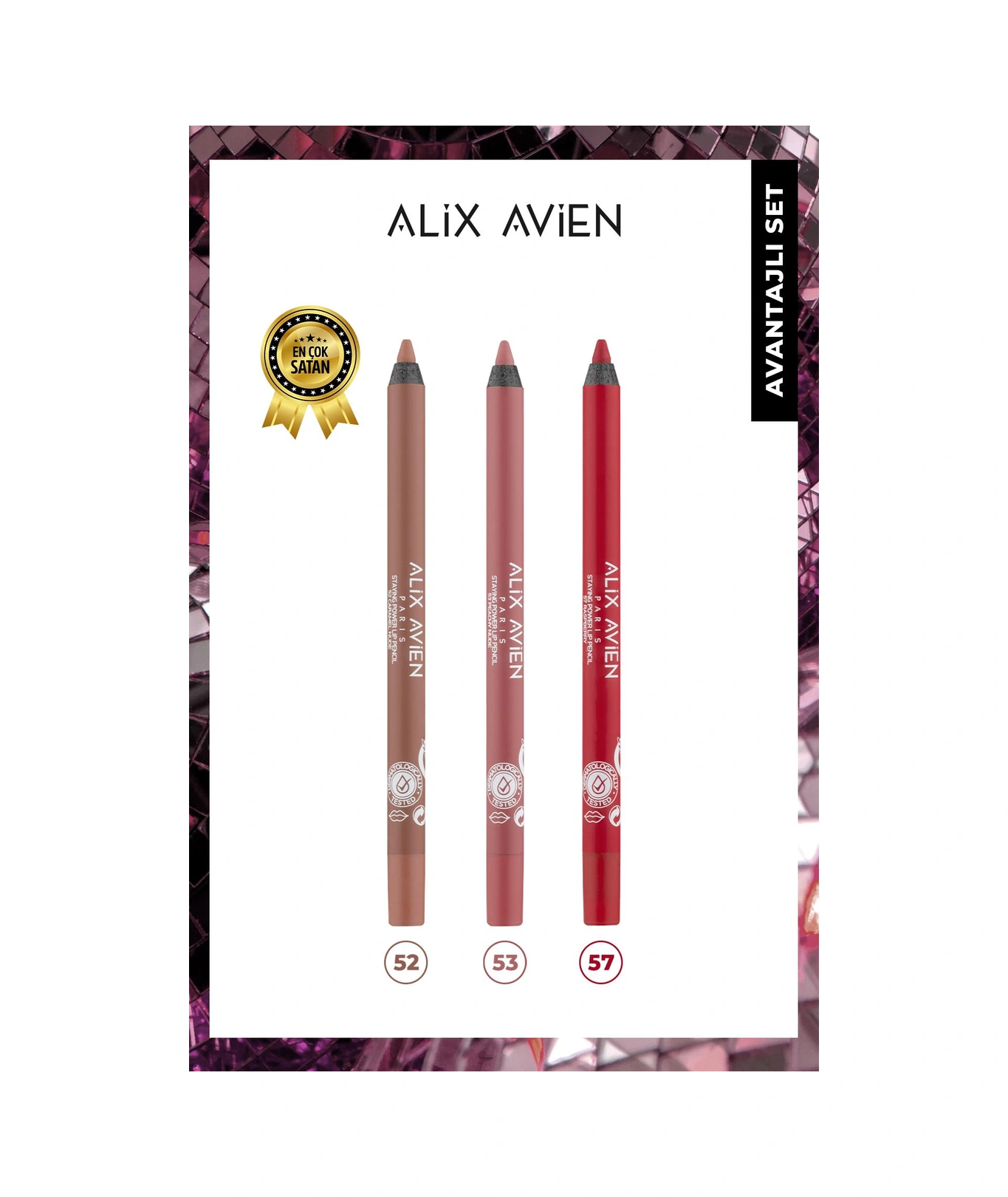 Alix Avien Suya Dayanıklı Uzun Süre Kalıcı Dolgunluk Etkili Yumuşak Uçlu Dağılma Yapmayan Dudak Kalemi Seti