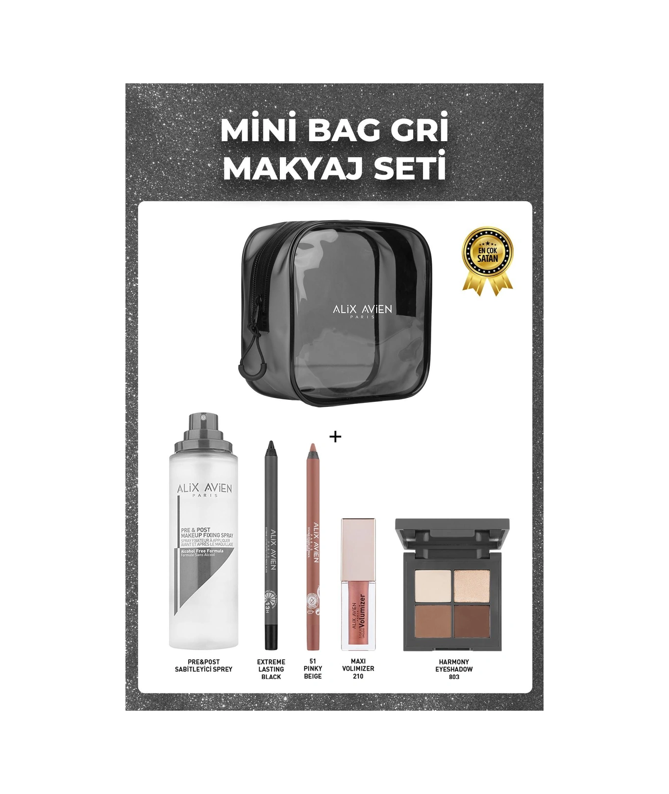 Alix Avien Uzun Süre Kalıcı Nemlendirme Işıltılı Dolgunlaştırıcı Etkili Yoğun Pigmentli Gri Çantalı Makyaj Seti