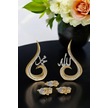 Allah C.c. Hz. Muhammed S.a.v Lafzı Ve Dekoratif Polyester Çiçekler Masa Süsü Biblo - Altın