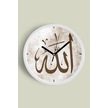 Allah Lafzı Arapça Hat Yazılı Dekoratif Duvar Saati İslami Sanat Tasarımı - 30cm - Önü Camlı Beyaz