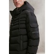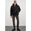 Allan Erkek Su Geçirmez Fermuarlı Kapüşonlu Kol Arma Ve Cep detaylı şişme Siyah Mont