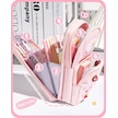 Ally Kawaii Büyük Kapasiteli Tuval Kalem Çantası Kızlar İçin Kılıf Tutucu Kutusu - Pembe Pembe