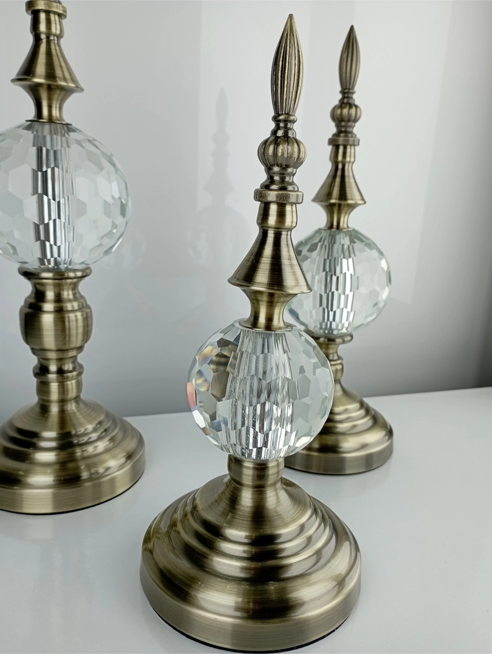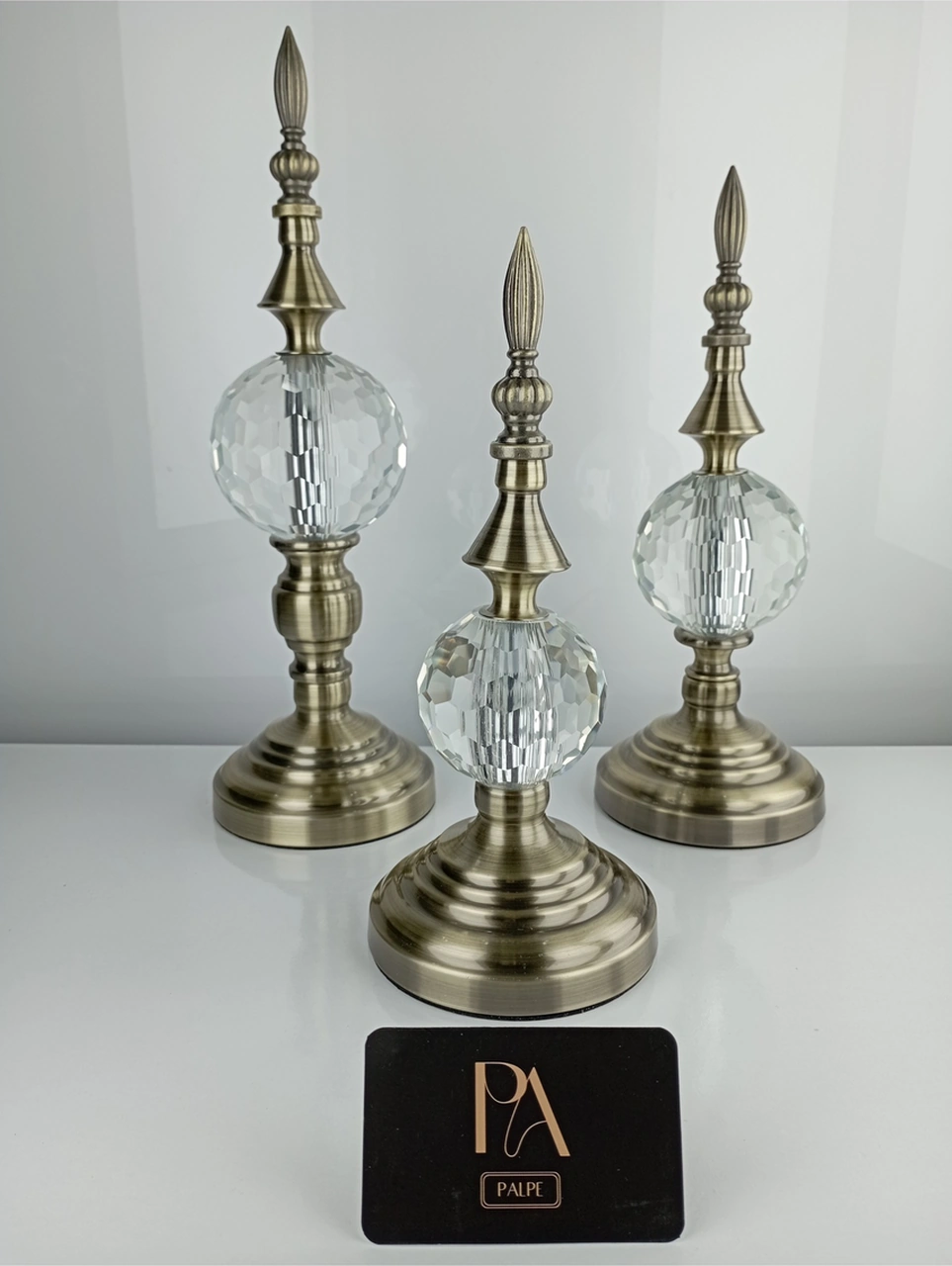 Alm-krşk-esktm Kristal 3lü Metal Dekoratif Obje Biblo Süs Eşya Salon Aksesuar Tv Sehpa Masa Konsol Ofis Salon Dekor