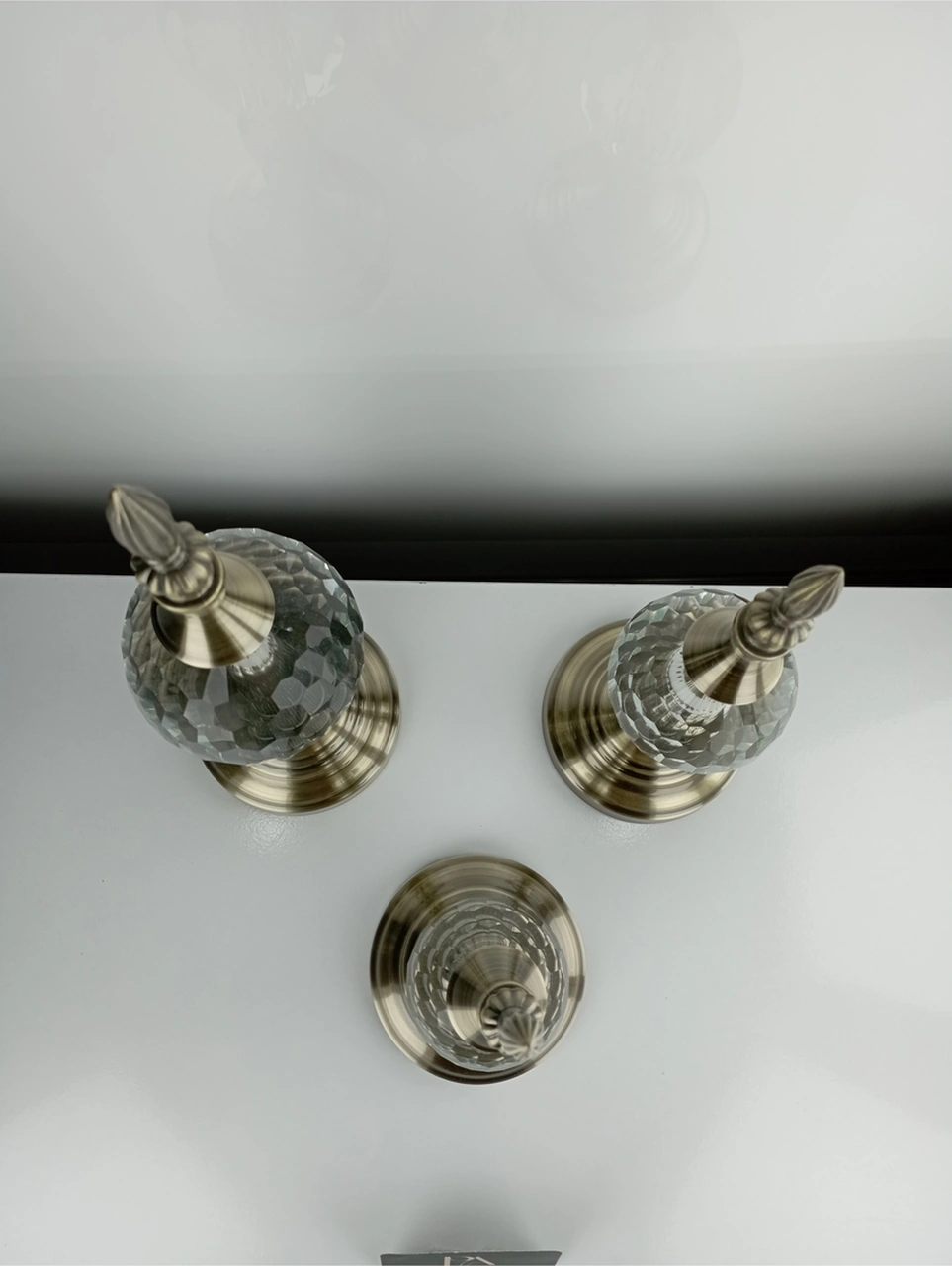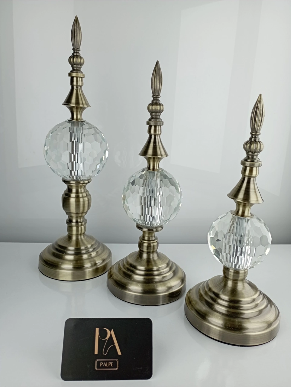 Kristal 3lü Metal Dekoratif Obje Biblo Süs Eşya Salon Aksesuar Tv Sehpa Masa Konsol Ofis Salon Dekor