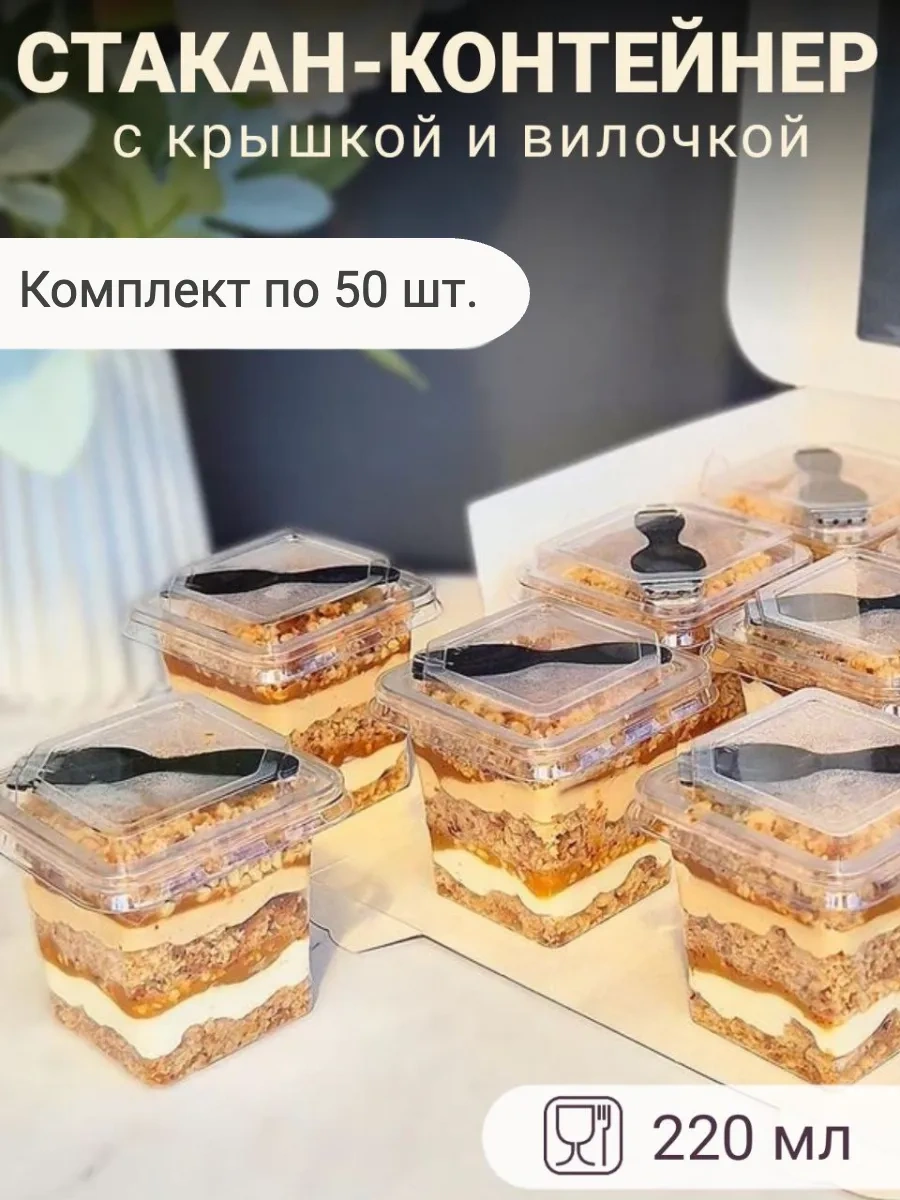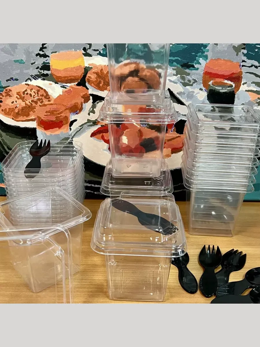 Almazpak Kapalı Tek Kullanımlık Tatlılar İçin Bardak/kapaklı Ve İç Çatalı Olan Saklama Kabı 268693931 100 adet