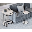 Alpa Ev Mobilya Ay 3 Lü Yuvarlak Zigon Sehpa Seti, Modern Metal Ayaklı C Model Şık Yan Sehpa Traverten