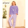 Alperi Uzun Kol Welsoft Pelüş Pijama Takımı Lila