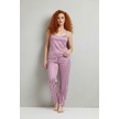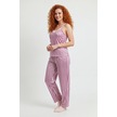 Altı Uzun İp Askılı Yumuşak Pembe Çizgili Pijama Takımı Çok Renkli