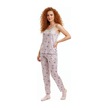 Altı Uzun Üstü Askılı Yumuşak Kalp Desenli Pijama Takımı Pembe Lacivert