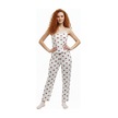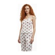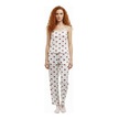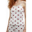 Altı Uzun Üstü Askılı Yumuşak Kırmızı Kalp Desenli Pijama Takımı Beyaz Beyaz