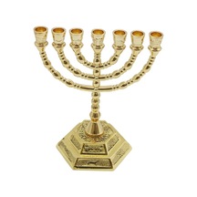 Altın 7 Dal Zincirli Menorah, Yahudi Günü Dekorasyonu, Dindar Tören Ve Ev Dekoru, 13cm Orta Aksesuar