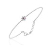 Altın Bilezik - Ortası Yakut Taşlı Çiçek 14 Ayar Altın Bilezik Beyaz