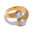 Altın Eetit Lüks Parlak Aaa Kübik Zirkonya Paslanmaz Çelik Geometrik Yüzük Yüksek Kaliteli Dokulu Takı Aksesuarları Kadınlar İçin Hediye Altın