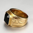 Altın Erkek Retro Sözleşmeli Exqusite Siyah Titanyum Çelik Yüzük Altın