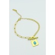 Altın Kaplama Seri Kararmaz Turkuaz Taşlı Kilit Çelik Bilek Gold Altın