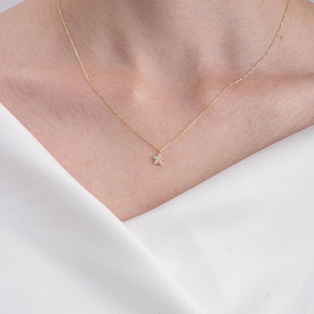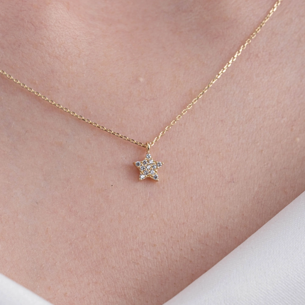 Altın Kolye - Taşlı Mini Yıldız 14 Ayar Altın Kolye Altın