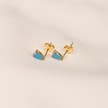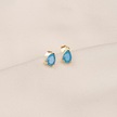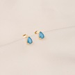 Altın Küpe - 14 Ayar Altın Damla Modelli Firuze Turkuaz Taşlı Küpe Sarı