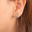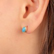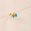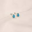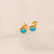 Altın Küpe - 14 Ayar Altın Firuze Turkuaz Taşlı Oval Küpe Sarı