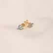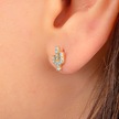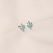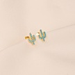Altın Küpe - 14 Ayar Altın Minimal Kaktüs Modelli Firuze Turkuaz Taşlı Küpe Sarı