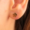 Altın Küpe - 14 Ayar Altın Minimal Yonca Yaprağı Küpe Sarı