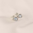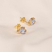 Altın Küpe - 14 Ayar Altın Oval Blue Topaz Taşlı Tektaş Küpe Sarı