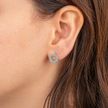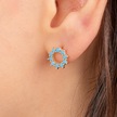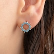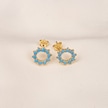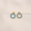 Altın Küpe - 14 Ayar Altın Yuvarlak Firuze Turkuaz Taşlı Küpe Sarı