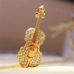 Altın Moda Kadın Altın Gümüş Kaplama Kristal Keman Eşarp Broş Taklidi Broş Altın
