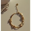 Altın Rengi Üçlü Yılan Zincir Dorikalı Çelik Bileklik - Minimalist Top Detaylı Altın Rengi Zarif Kadın Bilekliği Gold