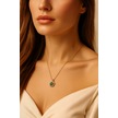 Altın Renk Kare Yeşil Taş Sf Zincir Çelik Kolye - 3661 Çok Renkli