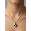 Altın Renk Mix Taşlı Yonca Model Top Zincir Çelik Kolye - 3683 Çok Renkli