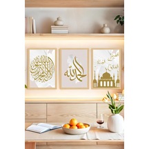 Altın Varaklı İslami 3 Lü Tablo Seti Şık, Anlamlı Ve Estetik Çerçeve Efektli Crvs1228 30 X 40