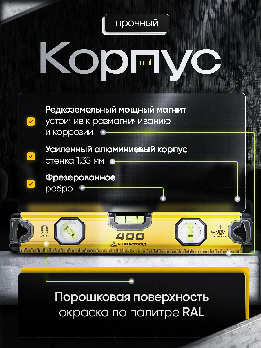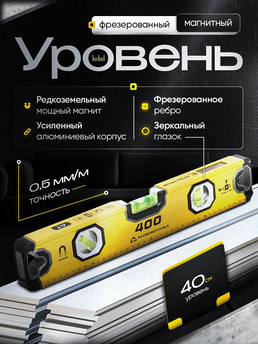 Alukomtools Manyetik Kabarcıklı İnşaat Seviyesi 400 Mm 340580096