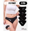 Alya Underwear Kadın Pamuklu Hipster - Slip Külot 5 Farklı Renk 1 Pakette Siyah P13