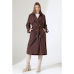 Amazon Keten Kumaş Diz Altı Yumuşak Dokulu Düğmeli Astarlı Trenç Kot Koyu Kahve Koyu Kahverengi