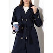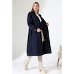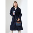 Amazon Keten Kumaş Diz Altı Yumuşak Dokulu Düğmeli Astarlı Trenç Kot Lacivert Lacivert