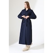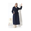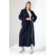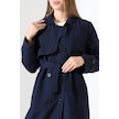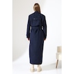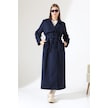 Amazon Keten Kumaş Uzun Boy Düğmeli Astarlı Yumuşak Dokulu Trenç Kot Lacivert Lacivert