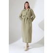 Amazon Keten Kumaş Uzun Boy Düğmeli Astarlı Yumuşak Dokulu Trenç Kot Mint Yeşil Mint Yeşili