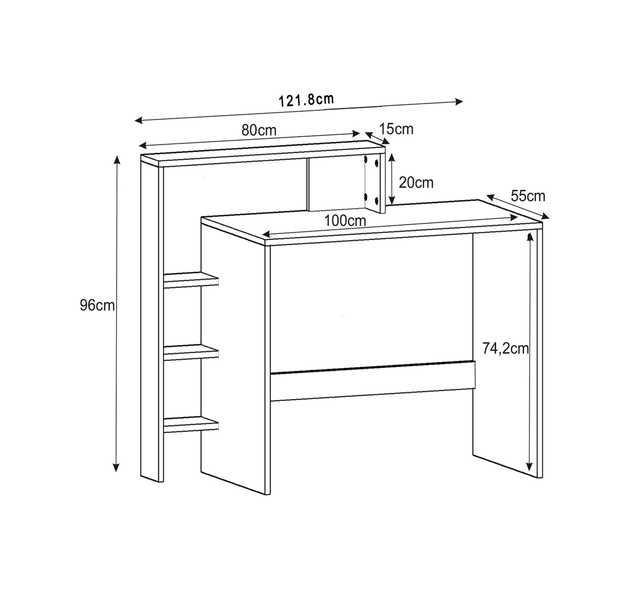 Amber Çalışma Masası Raflı, Modern Bilgisayar Masası Ceviz