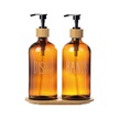 Amber Cam İkili Sıvı Sabunluk Seti 500 Ml Bambu Altlıklı Sarı