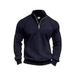 Amerikan Retro Gündelik Dik Yaka Fermuarlı Kazak Gevşek Örme Ağır Dikiş Jakarlı Sonbahar Ve Kış Uzun Kollu Kazak Lacivert
