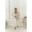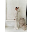 Eteği Volanlı Uzun Elbise Kırık Beyaz