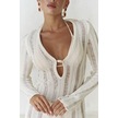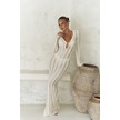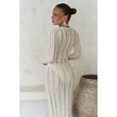 Anandra Boncuk Detay Bej Triko Uzun Elbise Bej