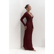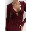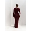 Anandra Boncuk Detay Bordo Triko Uzun Elbise Bordo