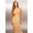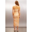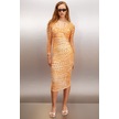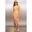 Anatola Kadın Tül Mesh Kumaşlı Puantiyeli Boyundan Bağlamalı Turuncu /desenli Elbise