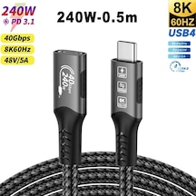 Anatoliadelight8k Usb4 Type C Kablo 40gbps 240w Pd3.1 Qc4.0 Thunderbolt 4 Hızlı Şarj Ve Veri Aktarım Kablosugökyüzü Mavi 1 Metre